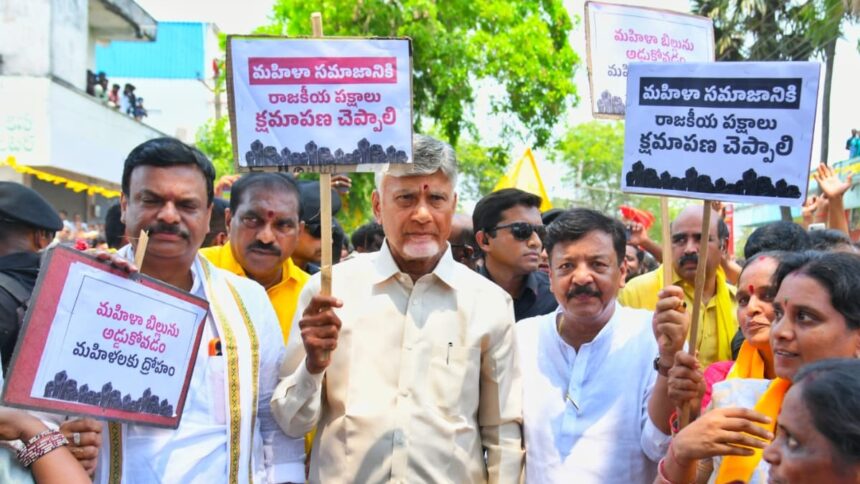 Chandrababu Naidu described the day the bill was stalled as a “black day” in India’s democratic history and demanded that opposition parties should apologise to women. He accused them of treating women merely as a vote bank while denying them rightful political representation.