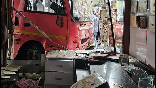 Inspector Arun Ghodke of Vishrambaug Police Station said the bus was carrying around 15 passengers. “The driver was briefly distracted while following a tanker and was on the verge of colliding with it. In an attempt to avoid the tanker, he swerved to the right, crashing into the shop and damaging its glass door and furniture,” he said.